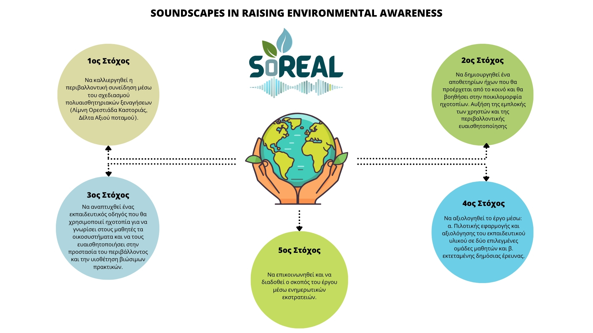 Να αναπτυχθεί εκπαιδευτικό υλικό, με τη μορφή ενός σύγχρονου εκπαιδευτικού οδηγού που θα χρησιμοποιεί τα ηχοτοπία μέσω ηχητικών χαρτών και podcasts, με στόχο την ενημέρωση των μαθητών για τα δύο οικοσυστήματα-στόχους. Μέσα από τη χρήση του υλικού και την ευαισθητοποίηση σχετικά με την επείγουσα ανάγκη για προστασία του περιβάλλοντος και υιοθέτηση βιώσιμων πρακτικών.